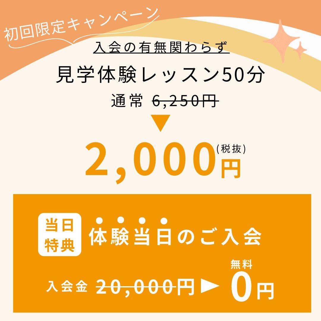 A. 見学体験料は2,000円(税抜)です。(見学だけでも可)当日は簡単な問診と姿勢チェックを行います。お子さんと保護者の方はご一緒に来店をお願いします。
